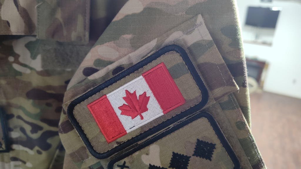 Measures 2" high by 4" wide. Choose from a variety of options for the background fabric and thread colour. Available with or without velcro backing.